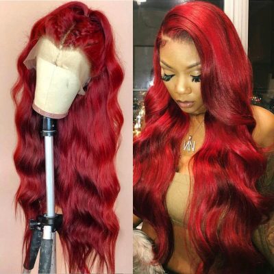 Red Body Wave Wig 100% Human Hair Lace Front 180% Density for Women