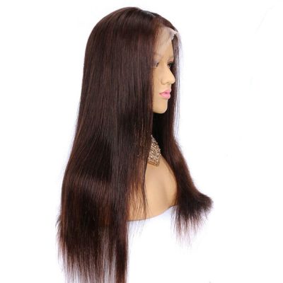 Brown Straight Wig 100% Human Hair Lace Front Wig for Women 180% Density