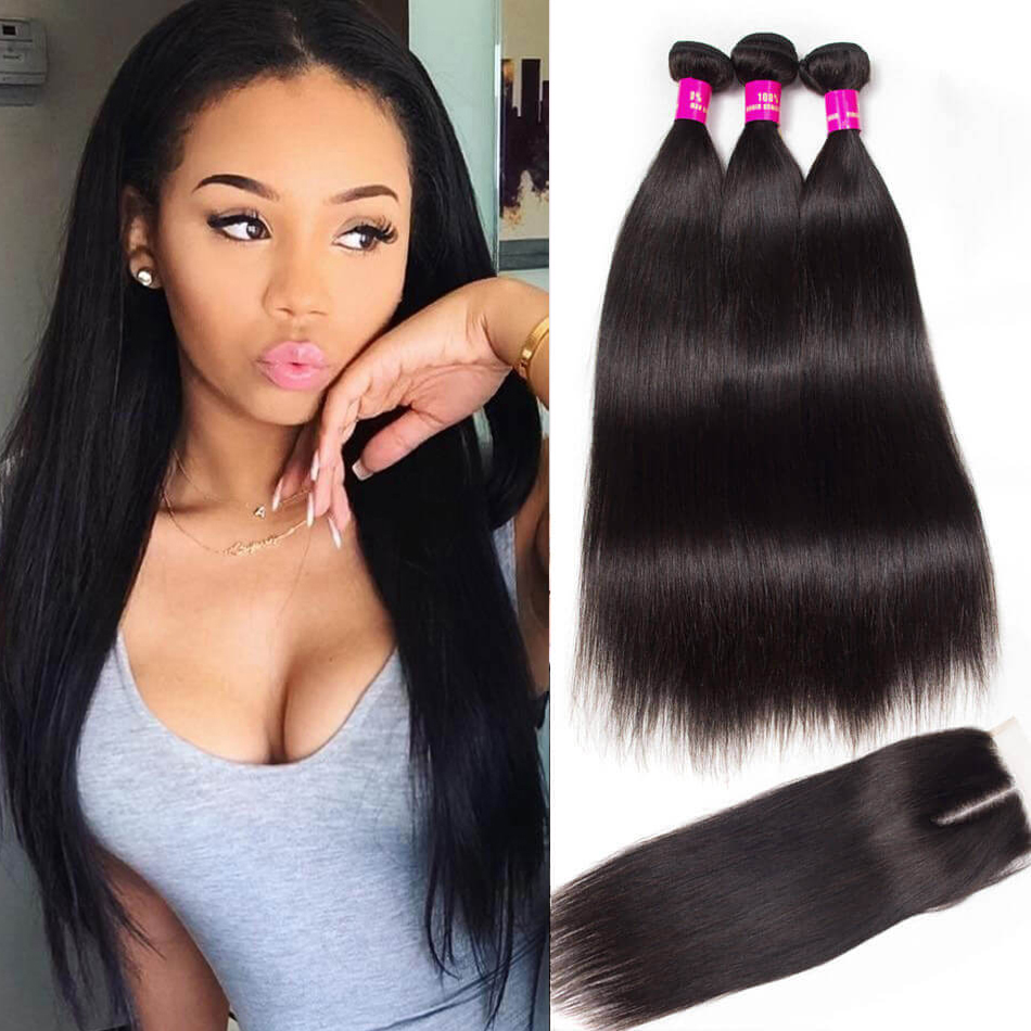 42 reviews for Brazilian Straight Hair 3 Bundles With Closure 10A Human Virgin Straight Hair