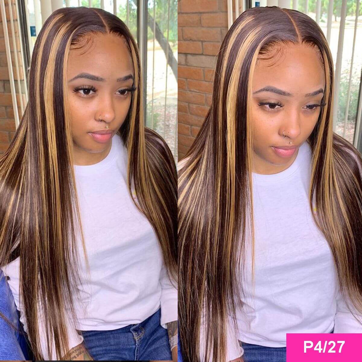 This highlight honey blonde straight wig delivers sleek texture, natural shine, and a soft blended color for a stylish everyday human hair look.